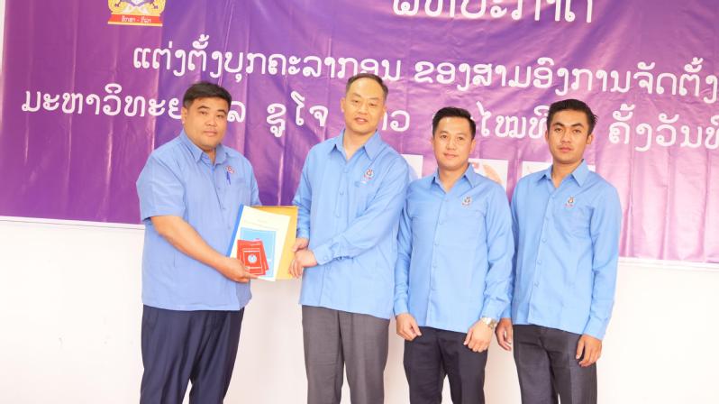 老挝民办教育协会副会长、工会组织主任潘伟莱·诺宏先生宣读了任命书,并亲自为老挝苏州大学共青团、工会、妇联组织管理小组成员颁发任命书。任命书是对新成员的信任与鼓励,更是对他们未来工作的期待。