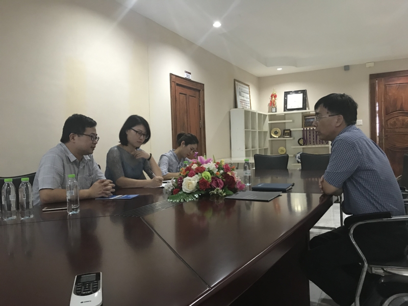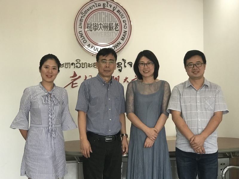 黄兴向周佳丽处长一行介绍了老挝苏州大学办学历程及目前的办学情况,并就中国大学境外办学有关问题谈了自己的认识和想法。周佳丽处长介绍了浙江传媒学院推进教育国际化的做法以及学校对境外办学的一些思考和探索。双方围绕大学如何推进国际化办学以及如何稳步推进境外办学等问题进行了深入交流。