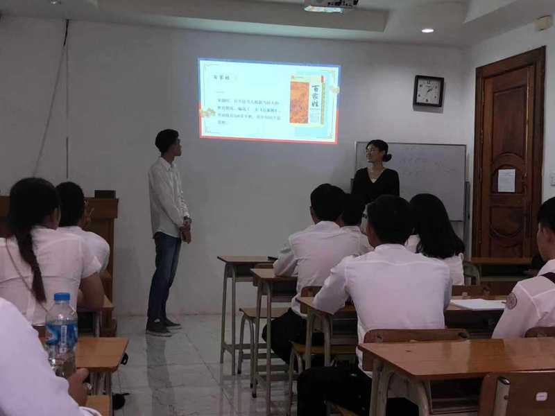 2019年10月15日13:30,我校“中国文化”系列公益讲座第五讲开讲,主题为“中国起名文化”,本次讲座由我校汉语教师阮辰哲主讲,教学与学生事务处负责老师、中文任课教师列席,2018、2019级学生参与。