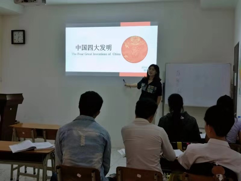 10月25日下午,在“初级口语”的课堂上,“随堂识中国”文化知识养成计划第六次活动顺利开展,主题为“四大发明”,由中文课教师阮辰哲主讲。阮辰哲用精心准备PPT向学生们介绍了推动人类文明进步的中国古代四大发明。造纸术,印刷术,指南针和火药令学生们兴趣盎然,他们表示十分敬佩古代中国劳动人民的智慧。