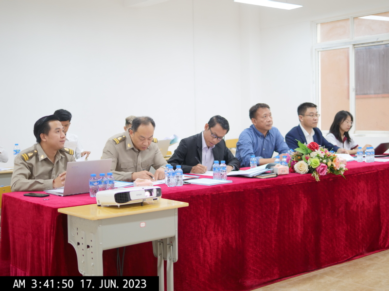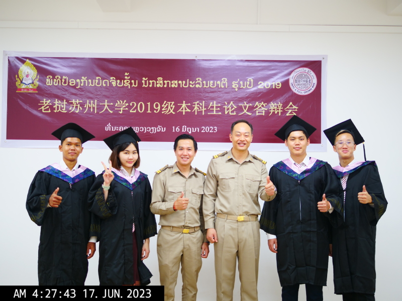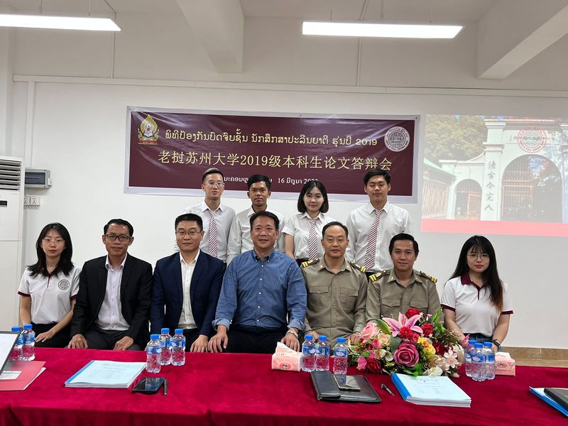 2023年6月16日,老挝苏州大学2023年本科生毕业论文答辩会在老挝苏州大学新校区(老挝万象)104教室顺利举行。老挝苏州大学校长黄文军,答辩会主席、老挝苏州大学中文教研室主任邵传永,答辩委员、老挝苏州大学校长助理冯温格、教学主管李派悉数出席。此外,本次答辩增设外请答辩委员,特邀老挝国立大学孔子学院院长罗明出席,严肃答辩纪律,把好毕业生出口关。