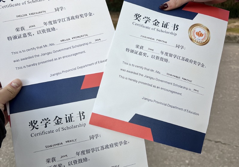 2024年11月,经本人申请、各学院(部)推荐、苏州大学组织专家评审,老挝苏州大学在苏就读的2021级及2022级本科生中有4名学生喜获“2024年度留学江苏政府优秀学生奖学金”。
