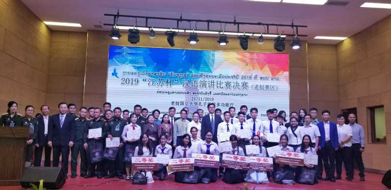 2019年11月21日上午,2019“江苏杯”汉语演讲比赛(老挝赛区)决赛在老挝国立大学孔子学院多功能厅成功举办。本次比赛由江苏国际文化交流中心、南京大学主办,老挝苏州大学、老挝国立大学承办,老挝国立大学孔子学院协办。江苏国际文化交流中心理事长、江苏省政协原副主席罗一民先生、老挝国立大学副校长Houngphet Chanthavong先生、中国驻老挝大使馆参赞覃晨先生、老挝教育部-民办教育司代表Oupasa Sisounthone先生、江苏省海外联谊会常委理事盛东林先生、老挝苏州大学副校长黄兴先生、老挝国立大学中文系主任Somsanouk Dalavong女士、老挝国立大学孔子学院老方院长Gnonevilay Saignaleuth女士、老挝国立大学孔子学院副院长Khamhoung Chanthavong先生、老挝凯山.丰威汉国防学院中国汉语专家组长李安平上校、老挝凯山.丰威汉国防学院汉语教研室主任Viengkham Phommathy中校、万象中学校长Viengsuvanh Phaxaysombath 女士、沙湾拿吉崇德学校副校长 Chindavanh Soukhavong女士等领导和嘉宾出席了比赛,各参赛单位师生代表及老挝社会人士等250余人观看了本次比赛。