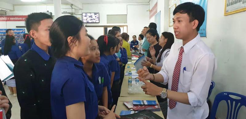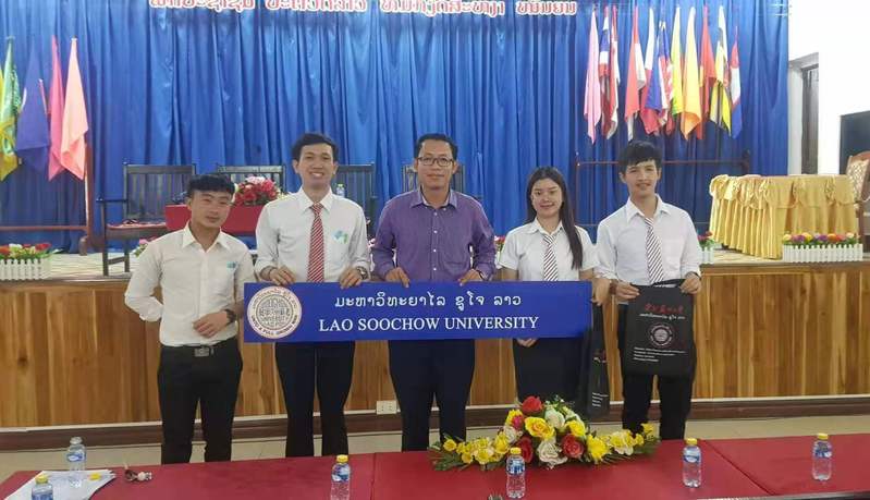 老挝苏州大学作为中国在老挝投资创办的第一所境外大学,在本次展会上吸引了最多观展人员的驻足与咨询。我校2018级本科生代表康碧上台宣讲,用自己的亲身经历向与会人员介绍我校的教学模式、奖学金申请等大家关注的热点和重点,同时也分享了自己的专业选择、学习体会和未来深造的打算。他认为:老挝苏州大学是老挝学生不出国门便可以享受地道汉语授课的最好选择。