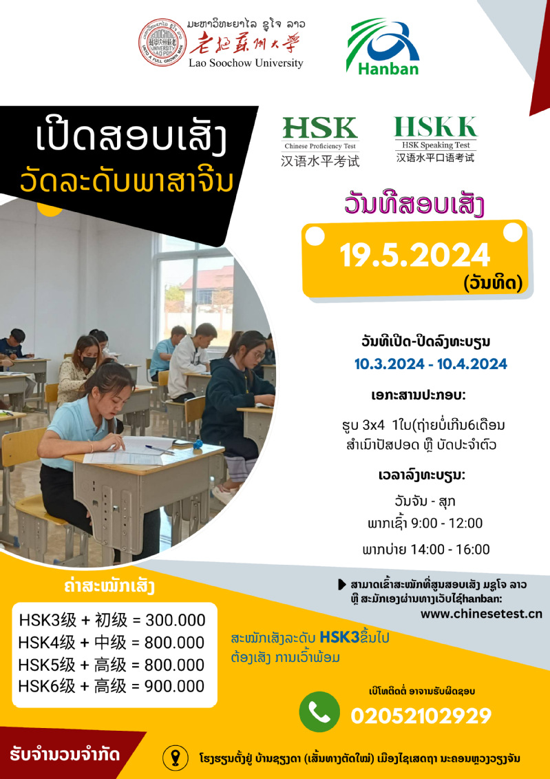 老挝苏州大学考点2024年5月19日汉语水平考试报名