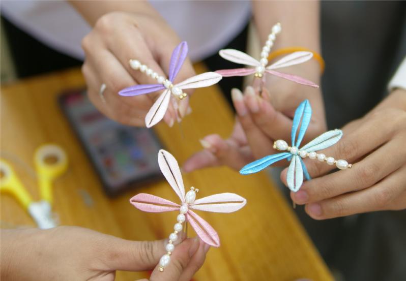 本次才艺课堂耗时近三个小时,大家在郭老师的帮助下纷纷制做出了专属自己的彩色蜻蜓。通过这次才艺课,学生们不仅了解并亲身感受了中国非遗缠花的魅力,还锻炼了耐力和观察力。