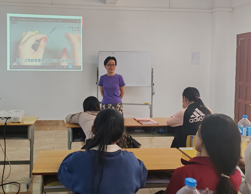 2024年3月13日,老挝苏州大学“中华才艺”系列课堂之手工制作又来啦。本次主讲人郭春兰带领老挝苏州大学本科生感受中国非物质文化遗产——缠花。