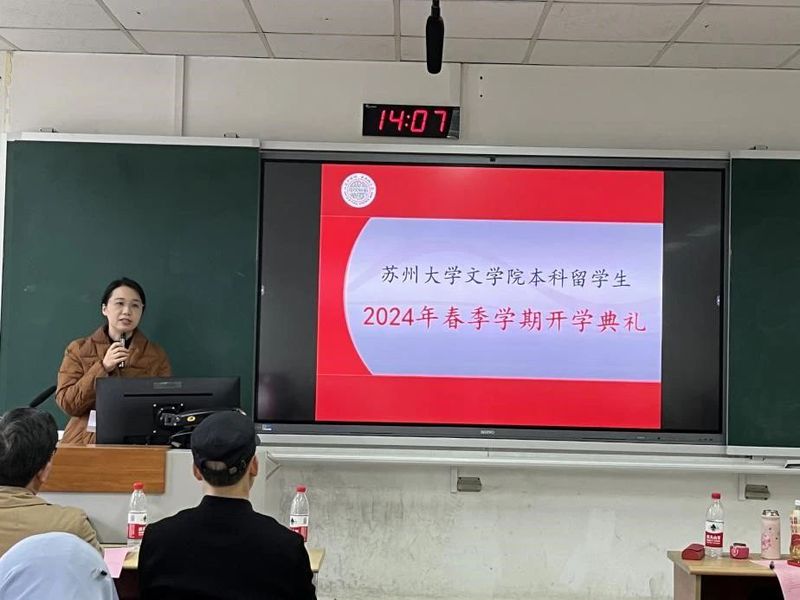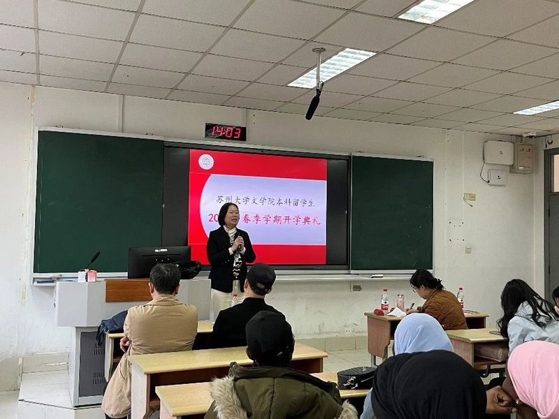 3月20日下午,苏州大学文学院2024年春季学期本科留学生开学典礼暨2023秋季学期成绩优异奖颁奖在苏州大学东教楼举行。苏州大学国际合作交流处、文学院、保卫处领导出席并发表讲话,老挝苏州大学中国语言专业学生全体参加。