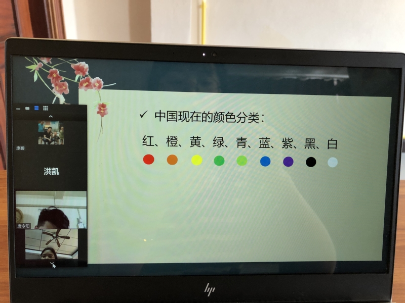 因疫情影响,本次讲座继续采用线上讲授的方式。吕亭亭用精美的图片和生动的语言,讲述了有关中国颜色文化的基本知识。在简单介绍中国古今的颜色分类后,她通过视频介绍中国不同颜色的象征意义以及不同场合的颜色禁忌,激发了学生的浓厚兴趣。最后,通过与颜色有关的中文词汇学习,学生们都被中国颜色文化的魅力深深折服。
