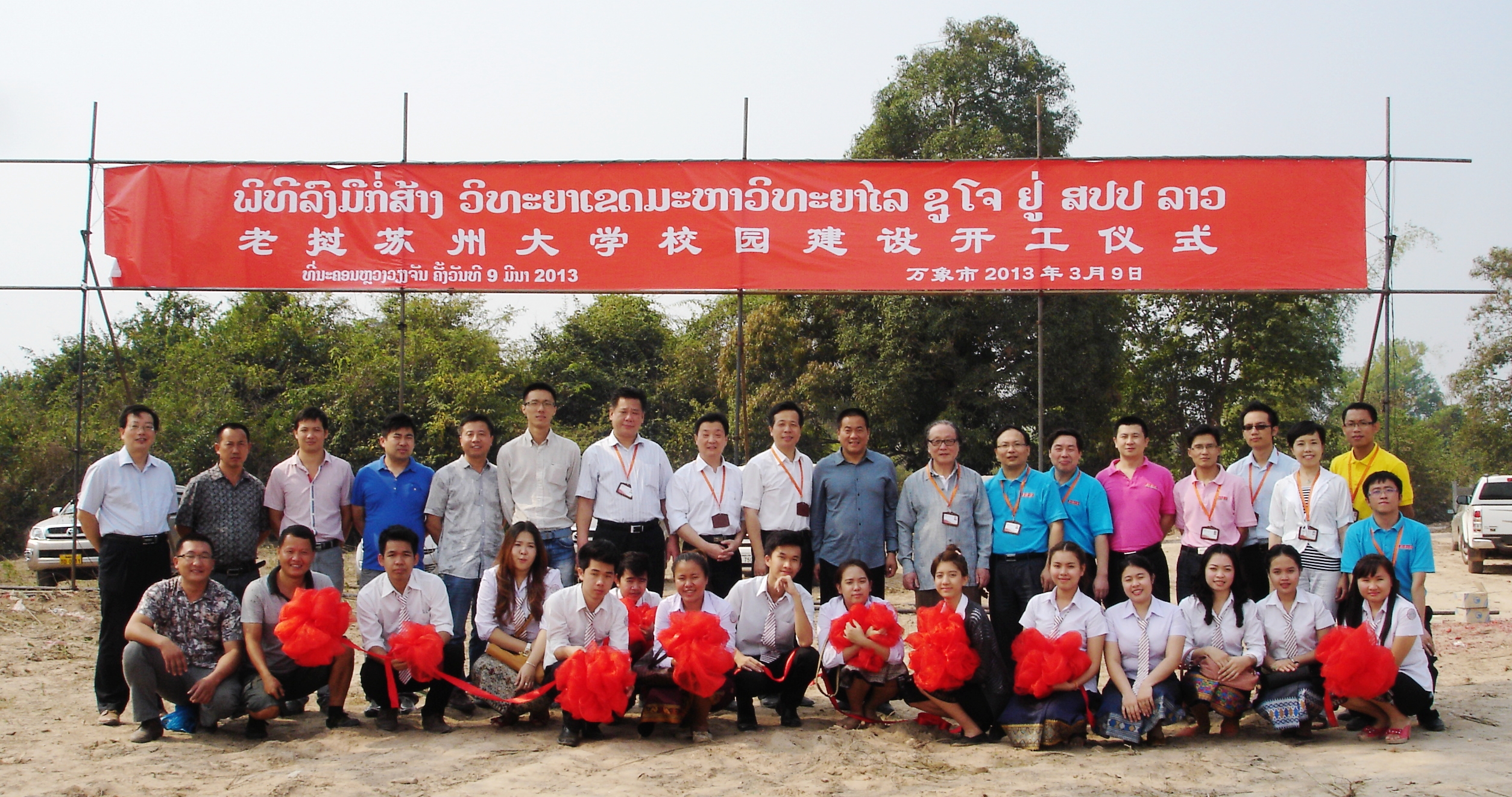 3月9日上午,在老挝首都万象市举行了老挝苏州大学校园建设开工仪式。苏州先锋木业集团公司董事长兼老挝苏州大学副董事长俞雪元、老挝苏州大学常务副校长闻曙明、副校长汪解先、顾问徐建中、施工单位负责人、以及老挝苏大全体员工和部分师生代表出席了开工仪式,共同见证了这一重要的历史时刻。