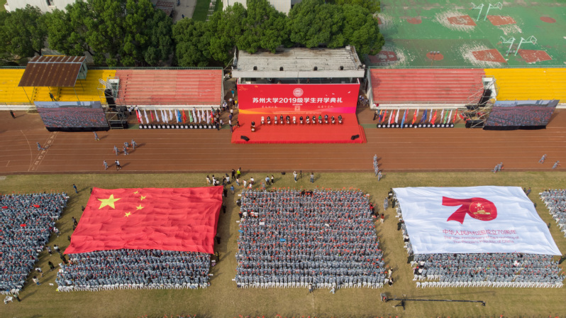 ຕອນເຊົ້າຂອງວັນທີ25 ກັນຍາ 2019, ນັກສຶກສາໃໝ່ທີ່ມາຈາກທຸກທິດຂອງປະເທດຈີນ ຈໍານວນ 12,603 ຄົນ ໄດ້ມາຮວມຕົວກັນຢູ່ທີ່ສະໜາມກິລາໃຫຍ່ມະຫາວິທະຍາໄລຊູໂຈ, ເພື່ອເຂົ້າຮ່ວມພາຍໃນພິທີເປີດສົກຮຽນໃໝ່ ປີ 2019.
