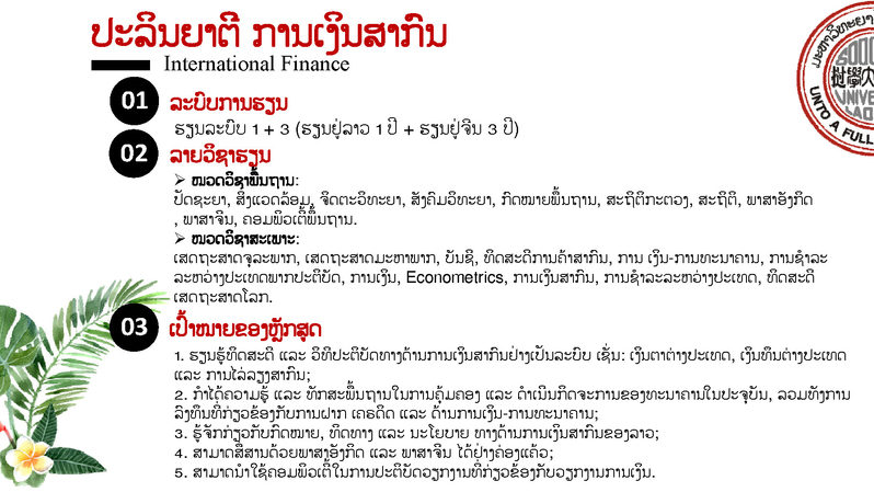 ປະລິນຍາຕີ ການເງິນສາກົນ