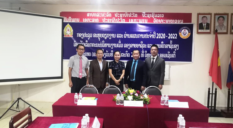 ຕອນບ່າຍວັນທີ 24 ກໍລະກົດ 2020, ອຈ. ພູວຽງແກ້ວມະນີ ຜູ້ຊ່ວຍອະທິການບໍດີ ມະຫາວິທະຍາໄລ ຊູໂຈ ລາວ ໄດ້ເຂົ້າຮ່ວມກອງປະຊຸມສາຍອາຊີວະ ແລະ ການ ສຶກສາຊັ້ນສູງທົ່ວປະເທດ ຂອງສະມາຄົມການສຶກສາພາກເອກະຊົນທີ່ຫ້ອງປະຊຸມຂອງວິທະຍາໄລ ຄອມເຊັນເຕີ້ ນະຄອນຫຼວງວຽງຈັນ. ໃນກອງປະຊຸມຄັ້ງນີ້, ອຈ.ພູວຽງ ແກ້ວມະນີ ໄດ້ນໍາໃຊ້ປະສົບການ ແລະ ອຸປະກອນທີ່ມີຂອງ ມຊລ ປະກອບສ່ວນຊ່ວຍສະມາຄົມຈັດກອງປະຊຸມທາງໄກ ຜ່ານລະບົບອອນລາຍ, ຊ່ວຍໃຫ້ ສະມາຊິກຕ່າງແຂວງ ທີ່ບໍ່ສະດວກເດີນທາງມາຮ່ວມກອງປະຊຸມສາມາດເຂົ້າຮ່ວມຮັບຟັງ ແລະ ປະກອບຄໍາເຫັນຕໍ່ກອງປະຊຸມໄດ້ພ້ອມໆກັນ.