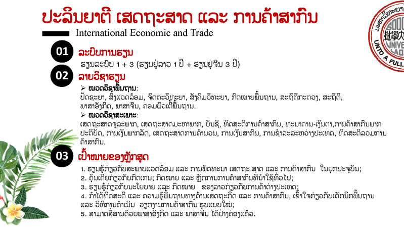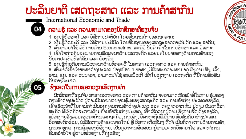 ຫຼັກສູດປະລິນຍາຕີ ເສດຖະສາດ ແລະ ການຄ້າສາກົນ