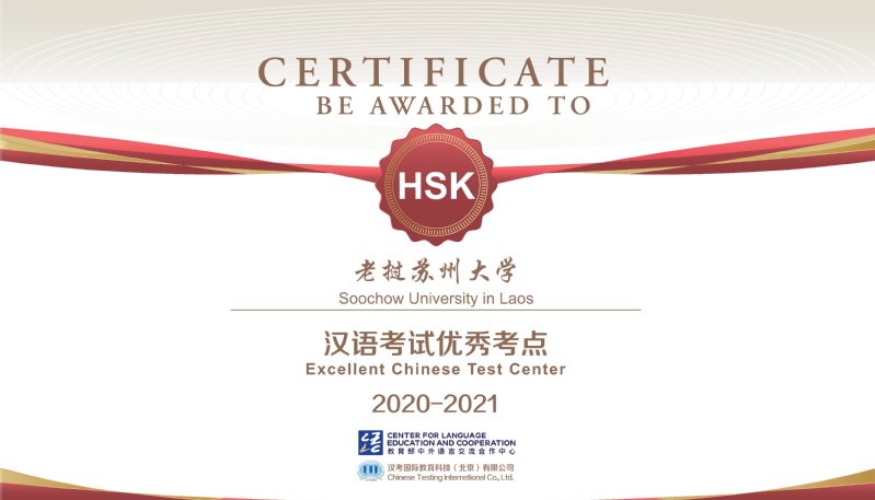 ຕາມເວລາປັກກິ່ງ ເວລາ 19:00ໂມງ ຂອງວັນທີ 16 ທັນວາ 2020, ພິທີມອບລາງວັນສູນສອບເສັງ HSK ດີເດັ່ນປະຈໍາປີ 2020 ໄດ້ຈັດຂຶ້ນຜ່ານລະບົບອອນລາຍ ແລະ ໄດ້ເຜີຍແຜ່ໄປທົ່ວໂລກໃນເວລາດຽວກັນ. ທ່ານ ຈ້າວໂກເສິນ ຮອງຫົວໜ້າສູນແລກປ່ຽນພາສາ ແລະ ການຮ່ວມມື ຈີນ-ຕ່າງປະເທດຂອງກະຊວງສຶກສາທິການ ສປ ຈີນ ໄດ້ອ່ານລາຍຊື້ສູນທີ່ໄດ້ຖືກຄັດເລືອກເປັນ “ສູນສອບເສັງ HSK ດີເດັ່ນ” ປະຈໍາສົກ 2020-2021 ແລະມອບໃລຢັ້ງຢືນ. ໃນນັ້ນ, ມະຫາວິທະຍາໄລ ຊູໂຈ ລາວ ໄດ້ຖືກຄັດເລືອກເປັນ “ສູນສອບເສັງ HSK ດີເດັ່ນ” ປະຈໍາສົກ 2020-2021.ການຄັດເລືອກຄັ້ງນີ້ ແມ່ນທາງສູນແລກປ່ຽນພາສາ ແລະ ການຮ່ວມມື ຈີນ-ຕ່າງປະເທດ ຂອງກະຊວງສຶກສາທິການສປ ຈີນ ແລະ ບໍລິສັດເຕັກໂນໂລຊີ ການສອບເສັງພາສາຈີນສາກົນ ຈໍາກັດຮ່ວມກັນຄັດເລືອກຈາກສູນສອບເສັງ HSK ທົ່ວໂລກຈໍານວນ 799 ສູນ, ໃນນັ້ນໄດ້ມີສູນທີ່ພ້ອມກັນໄດ້ຮັບການຄັດເລືອກເປັນສູນດີເດັ່ນທັງໝົດ 32 ສູນ. ອີງຕາມຂໍ້ມູນ, ຮອດເດືອນ 11 ປີ 2020 ທົ່ວໂລກມີສູນສອບເສັງ HSK ທັງໝົດ 1201 ສູນ, ໃນນັ້ນ ມີສູນສອບເສັງທີຢູ່ຕ່າງປະເທດທັງໝົດ799 ສູນ.