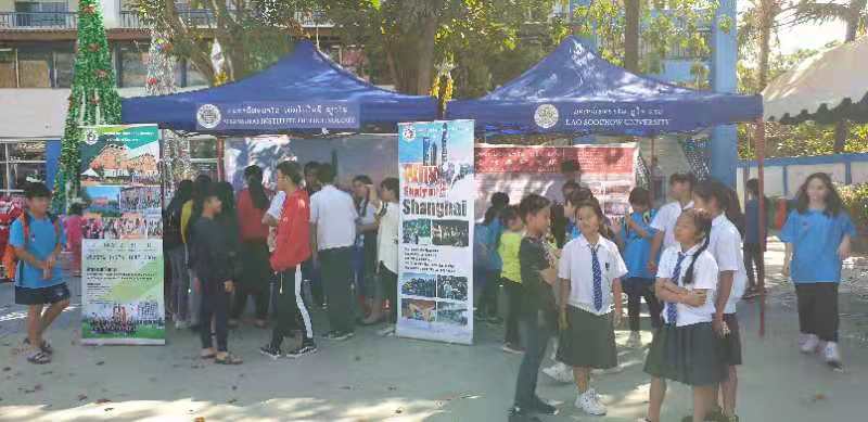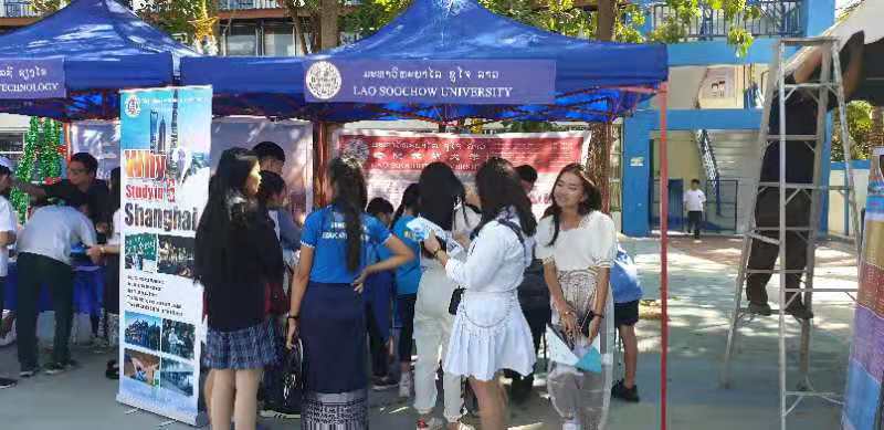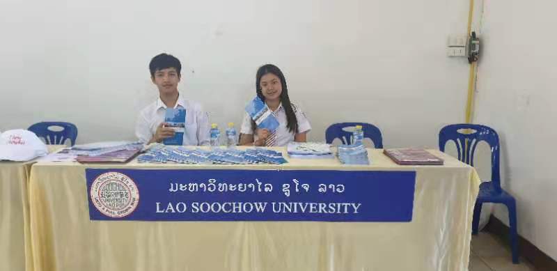 ພາຍໃນງານ, ຕາງໜ້າຜູ້ເຂົ້າຮ່ວມວາງສະແດງ ໄດ້ຂຶ້ນແນະນໍາກ່ຽວກັບສະຖາບັນຂອງຕົນ, ພ້ອມທັງແນະນໍາໃຫ້ແກ່ນັກນ້ອງນັກຮຽນກ່ຽວກັບການວາງແຜນການຮຽນ, ການເລືອກສາຂາວິຊາ ແລະ ວິທີການສະໝັກເອົາທຶນການສຶກສາເພື່ອຮຽນຕໍ່ທີ່ສະຖາບັນຂອງຕົນ. ມະຫາວິທະຍາໄລ ຊູໂຈ ລາວ ເປັນທາງເລືອກໜຶ່ງສໍາລັບນ້ອງນັກຮຽນ ເພື່ອເຂົ້າຮຽນຕໍ່ໃນລະດັບປະລິນຍາຕີ ທີ່ຮຽນເປັນລະບົບພາສາຈີນ ພາຍໃນລາວ, ທ້າວ ເຂັມເພັດ ນັກສຶກສາປະລິນຍາຕີປີທີ 2 ຂອງມະຫາວິທະຍາໄລ ຊູໂຈ ລາວ, ໄດ້ຂຶ້ນແນະນໍາກ່ຽວກັບລະບົບການຮຽນ ແລະ ຄວາມຮູ້ສຶກຂອງຕົນພາຍຫຼັງທີ່ໄດ້ເຂົ້າມາຮຽນຢູ່ໂຮງຮຽນແຫ່ງນີ້.