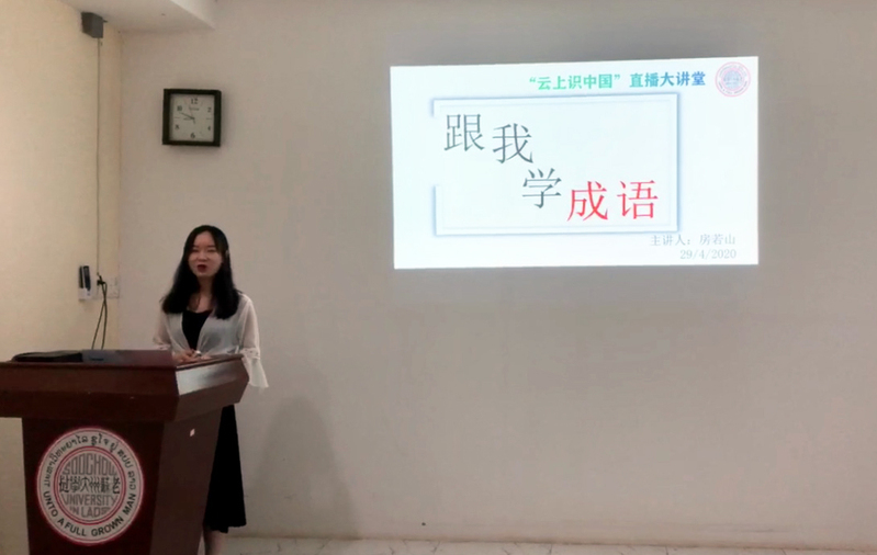 ພາຍຫຼັງທີ່ການຈັດຕັ້ງການຮຽນການສອນຜ່ານລະບົບອອນລາຍສໍາລັບນັກສຶກສາປະລິນຍາຕີໄດ້ປະສົບຜົນສໍາເລັດແລ້ວ, ມຊລ ກໍຍັງໄດ້ຈັດ ກິດຈະກໍາຢ່າງອື່ນເພື່ອເປັນການສົ່ງເສີມການຮຽນຮູ້ຜ່ານລະບົບອອນລາຍຕື່ມອີກ, ໃນນັ້ນພວກເຮົາໄດ້ຈັດການບັນຍາຍສົດຜ່ານລະບົບອອນລາຍ ໃນຫົວຂໍ້ລວມທີ່ວ່າ: “ຮຽນຮູ້ປະເທດຈີນຜ່ານ Cloud”, ໂດຍໄດ້ມອບໝາຍໃຫ້ອາຈານສອບພາສາຈີນຮັບໜ້າທີ່ໃນການບັນຍາຍໃນແຕ່ລະ ຫົວຂໍ້ຍ່ອຍທີ່ມີເນື້ອໃນກ່ຽວກັບ“ສິນລະປະພື້ນເມືອງຂອງຈີນ”, “ຄໍາສຸພາສິດຈີນ”, “ປະເພນີວັດທະນະທໍາຈີນ” ເຫຼົ່ານີ້ເປັນຕົ້ນ. ໂດຍໄດ້ເນັ້ນໜັກ ການໃຊ້ສັບສໍານວນທີ່ອ່ອນຊ້ອຍ, ການບັນຍາຍທີ່ມ່ວນຫູປະສົມປະສານກັບເນື້ອເລື່ອງທີ່ໜ້າສົນໃຈຊ່ວຍໃຫ້ປະຊາຊົນລາວກໍຄືນັກຮຽນ-ນັກສຶກສາ ສາມາດສໍາພັດໄດ້ເຖິງມົນສະເໜ່ຂອງພາສາແລະວັດທະນະທໍາຈີນ.